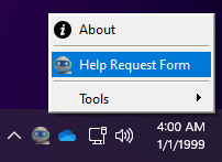 Find the robot icon in your system tray and right-click on it to access the Help Request Form.